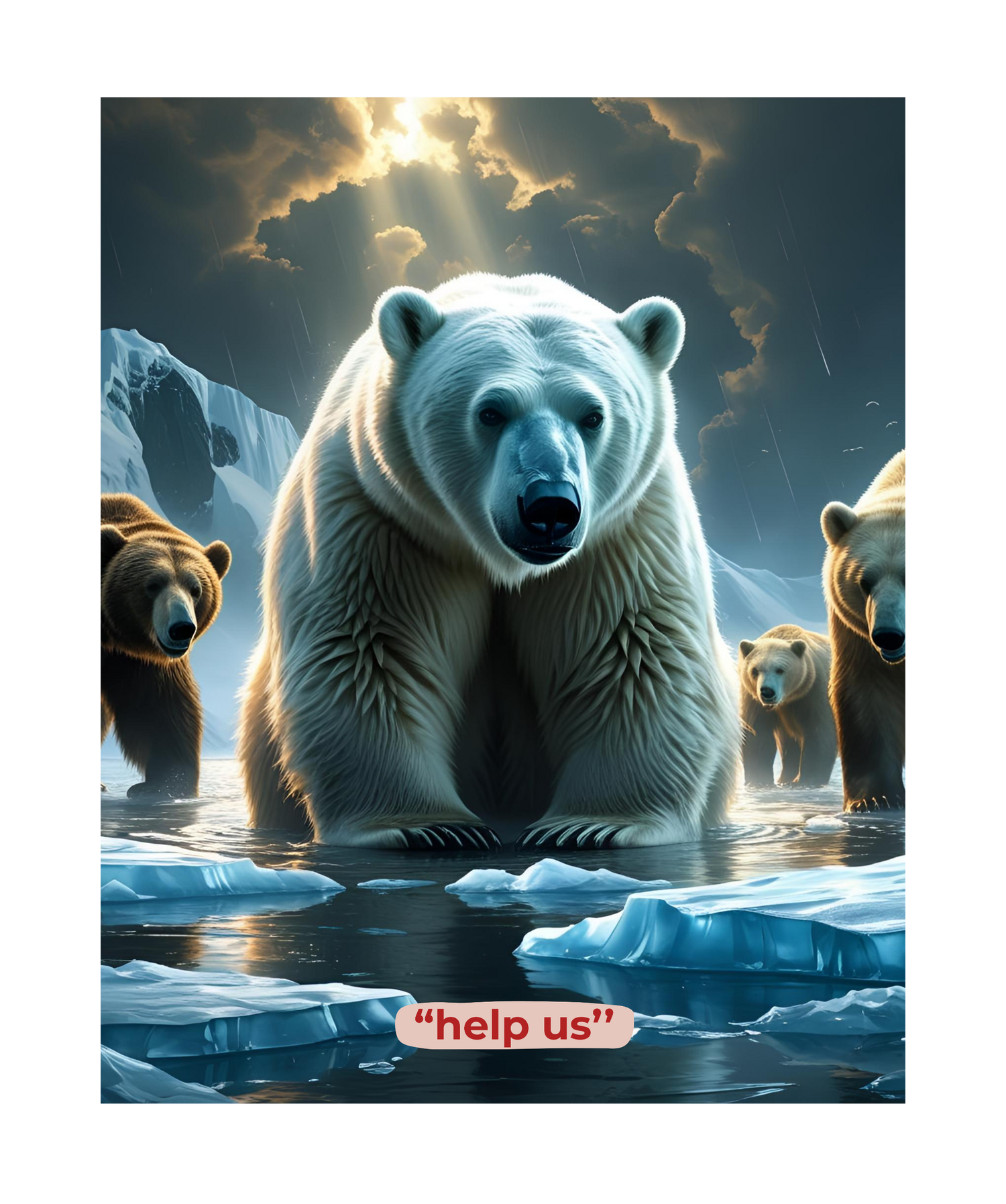 Four polar bears. One shrinking slab of ice. No joke to hide behindâjust a quiet, heavy little sign that says âHelp us.â Not every SniffPad design snorts or punks you; sometimes the animals get the mic and we step back. This piece is exactly that: a pause button. A reminder that the wild isnât a theme park backdrop, itâs home for noses, paws, clawsâand itâs getting harder to stand on. If this image tugs at you, wear it. Let it start a conversation on a hoodie, a mug, a stickerâwherever people will ask, âWhatâs that about?â and you can answer with whatever you believe needs to be said. No lectures required. Just a little empathy, printed large.